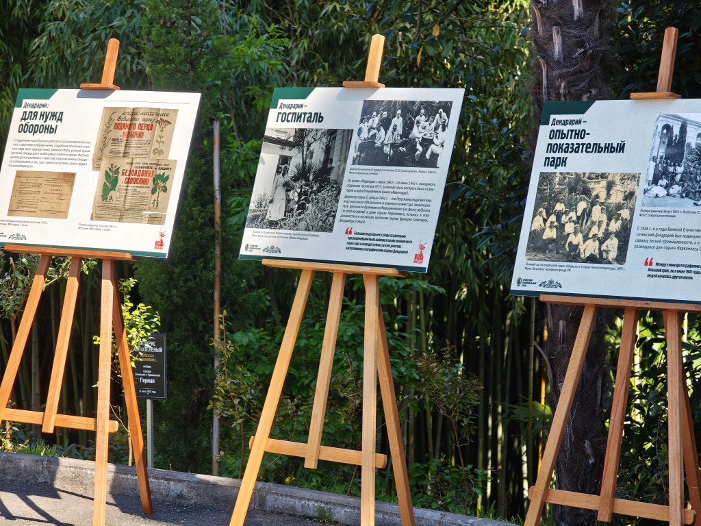 В праздничные дни в парке Дендрарий у Виллы «Надежда» начала работу тематическая экспозиция. На стендах представлены материалы о парке периода Великой Отечественной войны, научно-исследовательской и практической работе для нужд города-госпиталя.