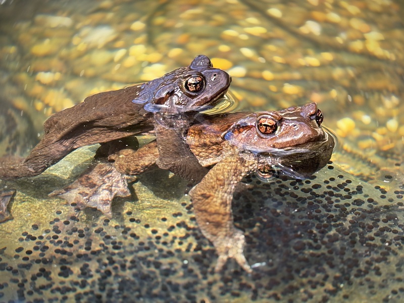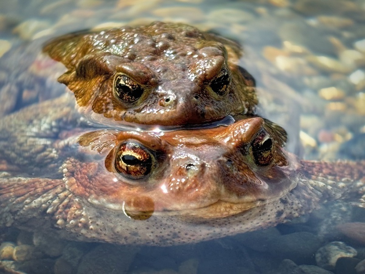 Во время водного брачного периода многие жабы возвращаются к тому водоему, в котором они развивались головастиками. В результате можно наблюдать сезонные миграции, в которые вовлечено множество особей. Также амфибии способны различать запах воды своего и чужого водоемов. Один из возможных механизмов запоминания - импринтинг, то есть запечатление запаха родного водоема на ранних стадиях развития. В сенсорном обеспечении хоминга важную роль играет зрение, но у слепых амфибий устремление к месту нереста не нарушается. Если жабу перенести из водоема, в котором она родилась и выросла, в другой, она отправляется искать свой пруд и обычно находит, если находится не слишком далеко. Жабы возвращаются и упорно ищут воду даже в тех водоемах, которые пересохли или засыпаны, но в которых прежде они жили головастиками.
