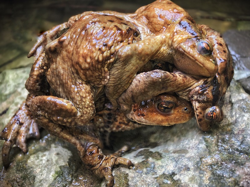 Сильные проявления брачного инстинкта делают жаб на столько не разборчивыми, что они пытаются совокупляться с бутылками, мусором, комками грязи и даже ботинками исследователей. В практике был случай, когда 3 самца дрались за ногу человека.